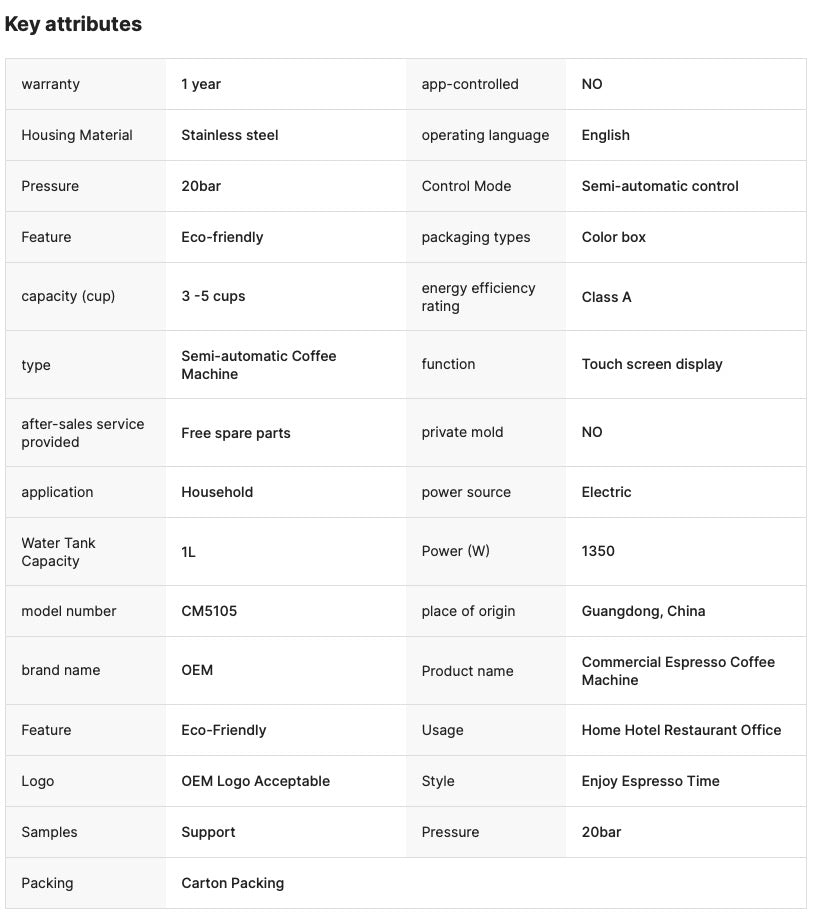 This semi-automatic espresso machine combines high-pressure steam extraction with compact design, ideal for small household use. Engineered for consistent coffee quality, it delivers rich espresso with optimal crema. Its electric operation ensures ease of use and precise control, making it suitable for both beginners and coffee enthusiasts. Designed for cross-border export, it meets international standards, offering reliable performance and durability in diverse settings. Perfect for those seeking professional-style espresso at home without compromising space or convenience.